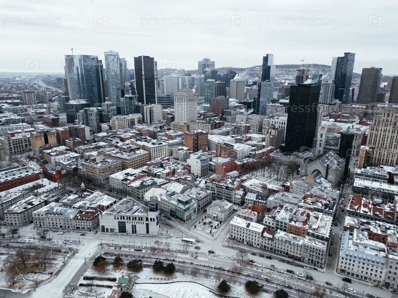 Зимний вид на прибрежный берег Старого Порт-Сити с развлекательной зоной.Монреаль, Канада