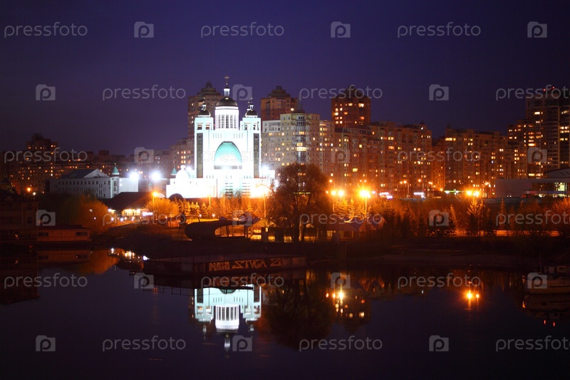Киевская церковь с рекой Днепр и мостом, Украина, Восточная Европа