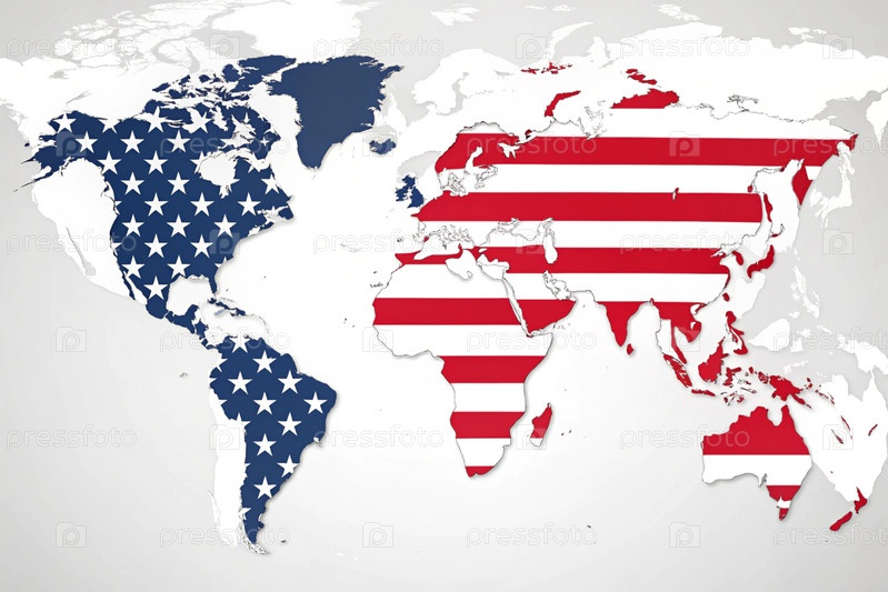Концепция американской экспансии. Американский флаг в форме карты мира