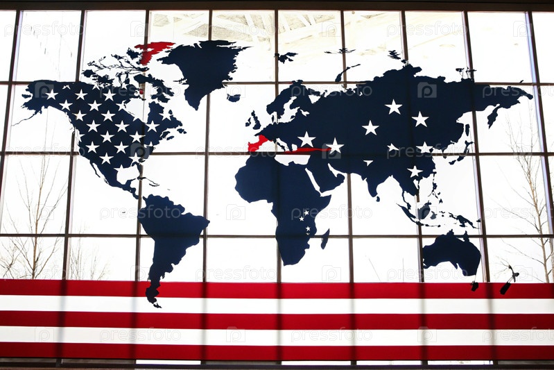 Концепция американской экспансии. Американский флаг в форме карты мира