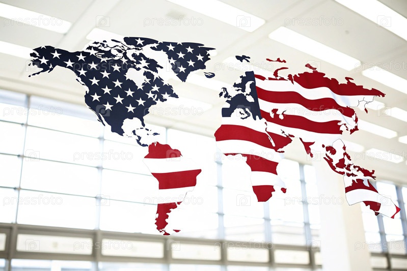 Концепция американской экспансии. Американский флаг в форме карты мира