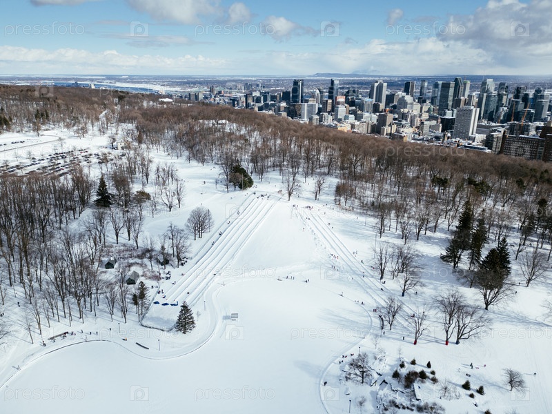 Вид на каток и центр города зимой с Мон-Рояля, Монреаль