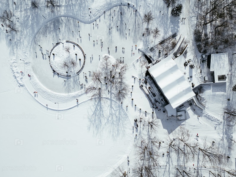 Вид на каток и центр города зимой с Мон-Рояля, Монреаль