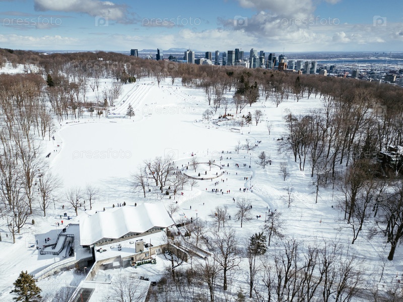 Вид на каток и центр города зимой с Мон-Рояля, Монреаль
