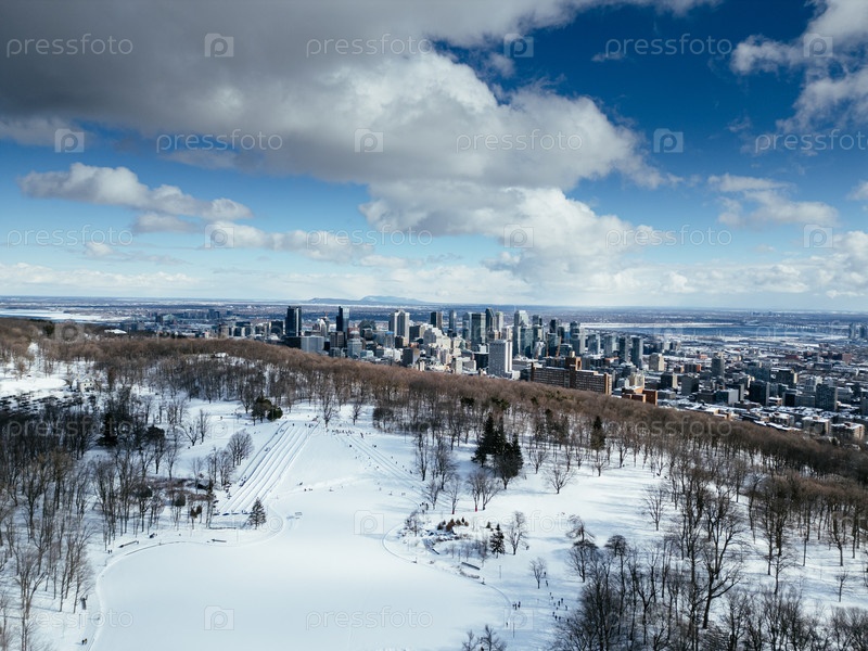 Вид на каток и центр города зимой с Мон-Рояля, Монреаль