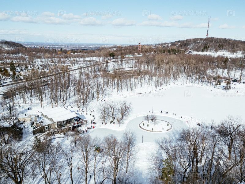 Вид на каток и центр города зимой с Мон-Рояля, Монреаль