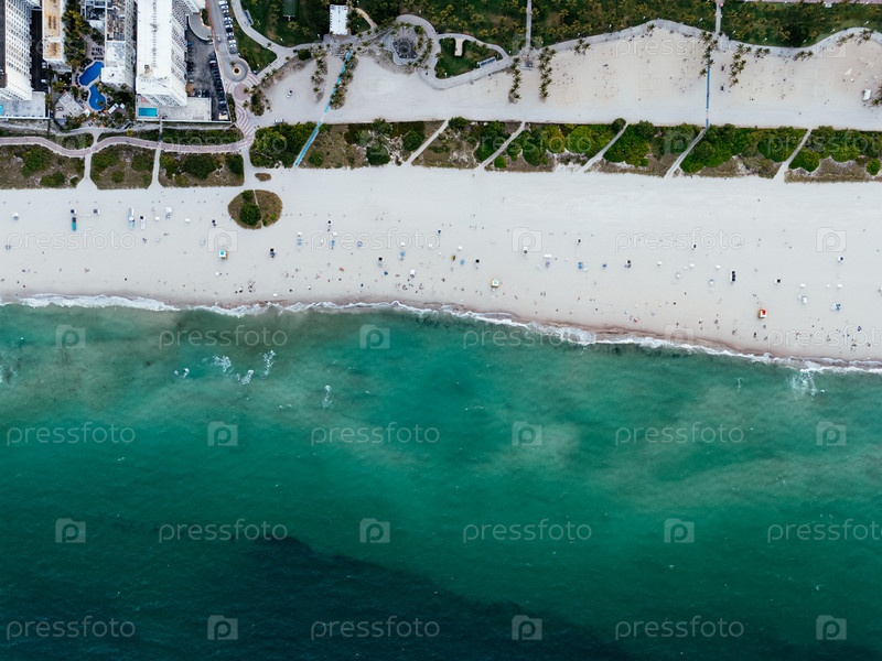 Вид из воздуха Майами-Бич сверху на закате солнца, Южный Бич, штат Флорида, США