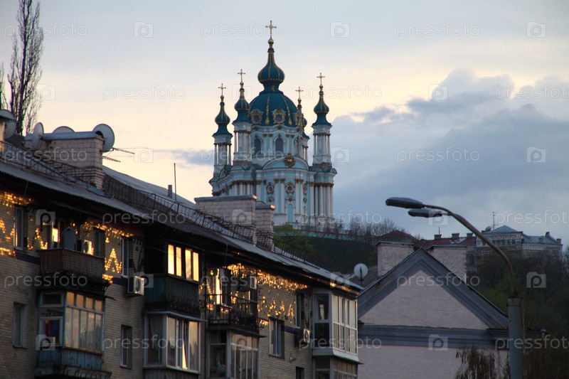 Православная церковь в начале весны при закате солнца, Киев, Украина, Европа