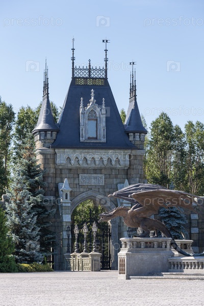 Бронзовая статуя дракона перед входом в замок Гарибальди