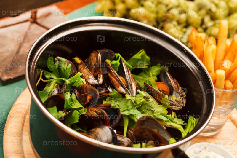 Мидии с картофелем фри