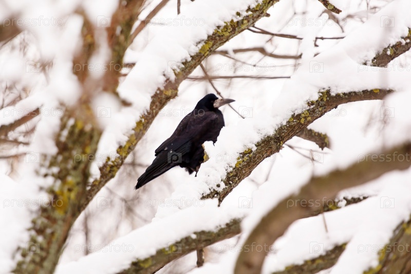 Ворон сидит на дереве