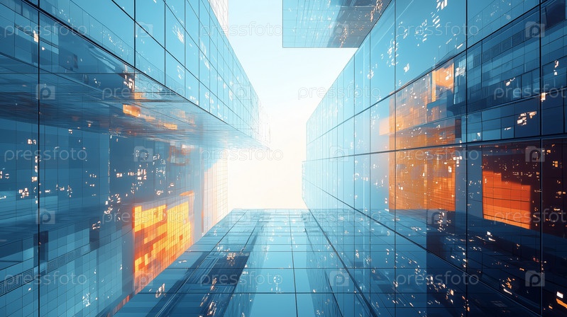 Солнечный свет отражается на современных небоскребах в футуристическом городе