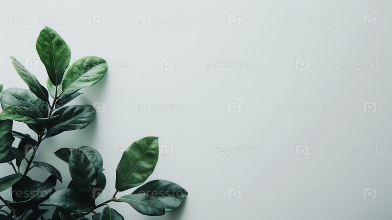 Минималистические зеленые листья на белом фоне