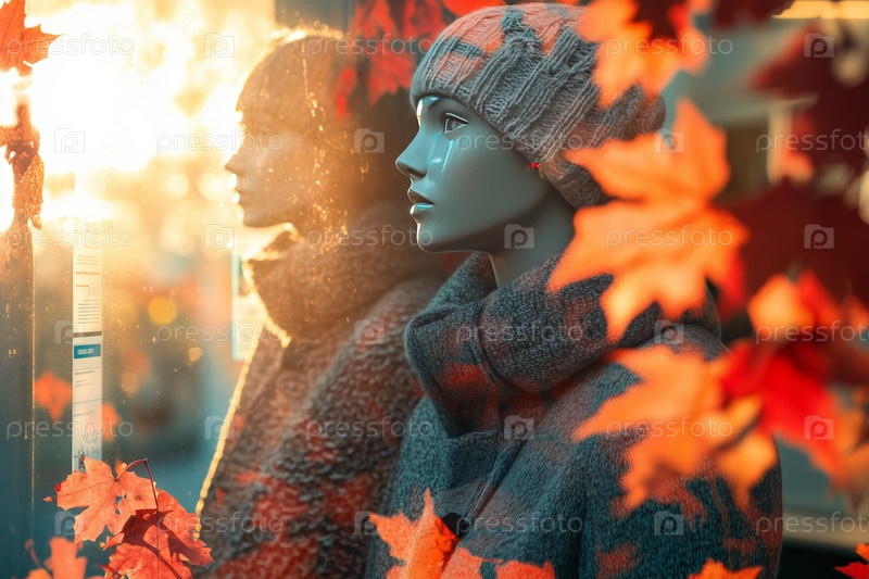 Осенний тематический магазин с манекенами в уютной одежде
