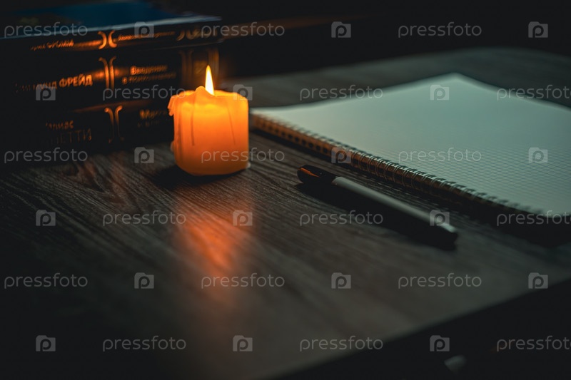 Большой ноутбук и черный маркер при свечах