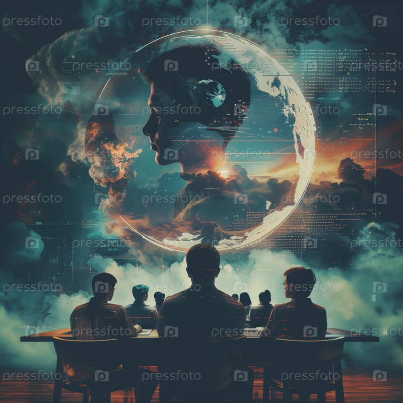 Футуристический класс с цифровым миром и студентами