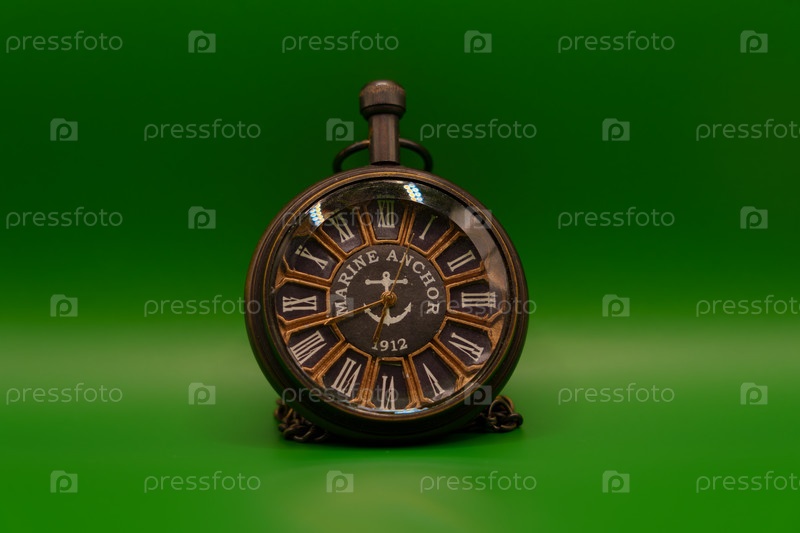 Винтажные карманные часы с дизайном Marine Anchor на зеленом фоне