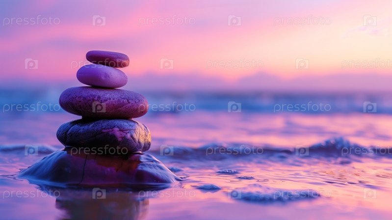 Сбалансированные камни с цветом в спокойной воде
