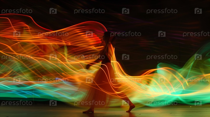Длинная экспозиция световых следов танцевальной фигуры