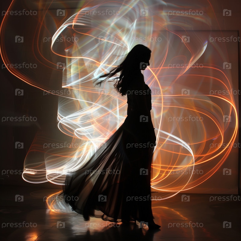 Женщина со светлыми следами в темноте