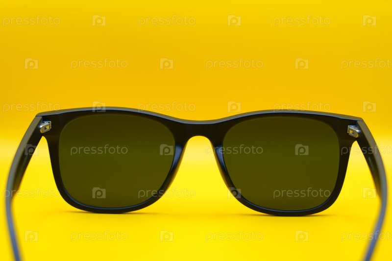 Обратный вид черных солнцезащитных очков на желтом фоне