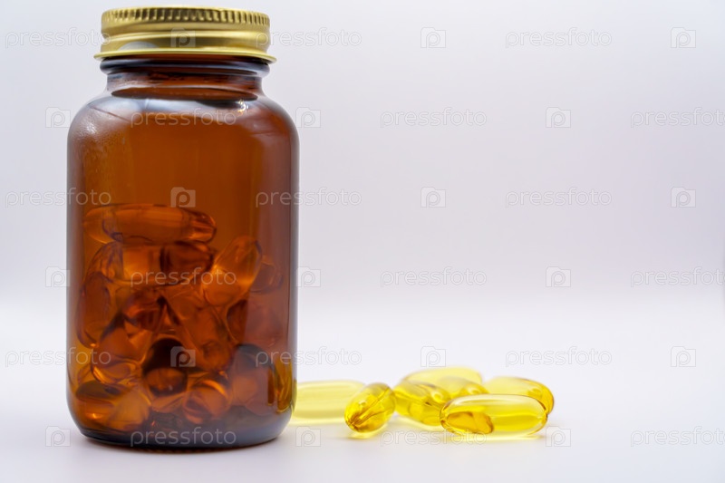 Янтарная бутылка капсул Омега-3 мягкого геля с рассеянными добавками