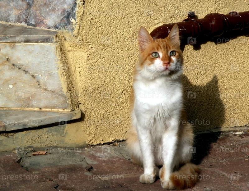 Бело-красный уличный кот
