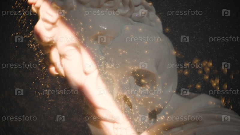 Классическая древняя скульптура Аполлона и череп человека, ползущий по его лицу, спор о концепции бессмертия и смертности