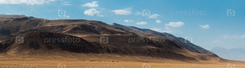 Гармоничный казахский природный пейзаж - волнистая степь, нежные склоны и небо