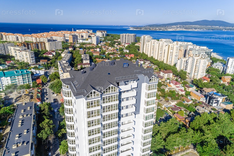 Многоэтажный жилой дом с видом на Геленджикский залив, Черное море и Кавказские горы