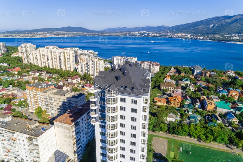 Многоэтажный жилой дом с видом на Геленджикский залив, Черное море и Кавказские горы