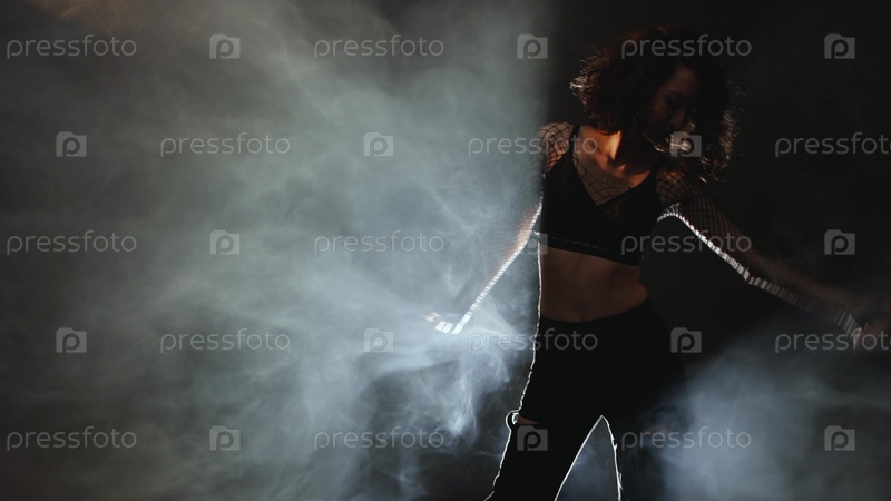 Стильное современное танцевальное представление - женщина в сетчатом топе и черных брюках