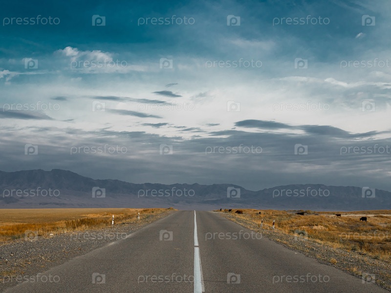 Пустынная магистраль с видом, идеально прямая дорога, ведущая к далеким горам