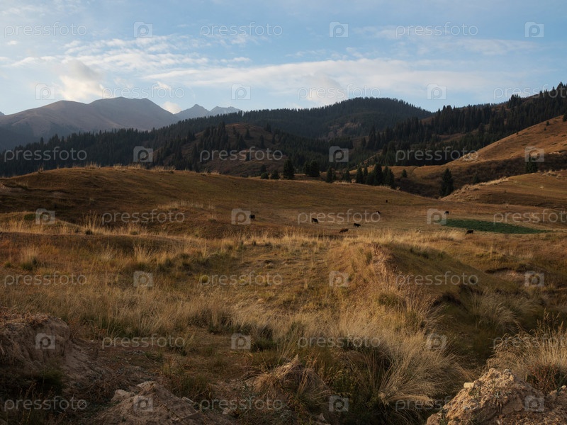 Величественный казахский пейзаж: заснеженные вершины, лесистые холмы и золотые степи в кадре