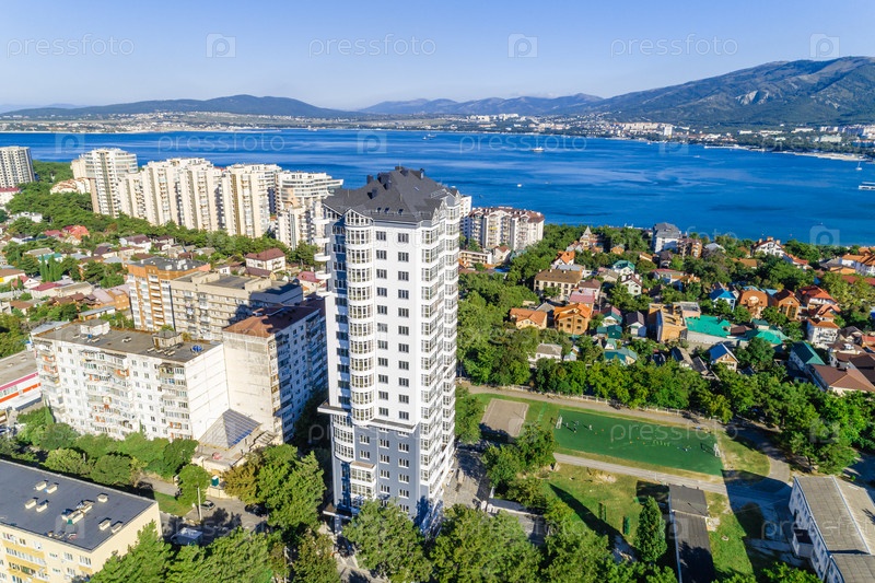 Многоэтажный жилой дом с видом на Геленджикский залив, Черное море и Кавказские горы