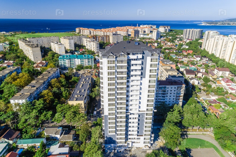Многоэтажное жилое здание с видом на залив Геленджик, Черное море