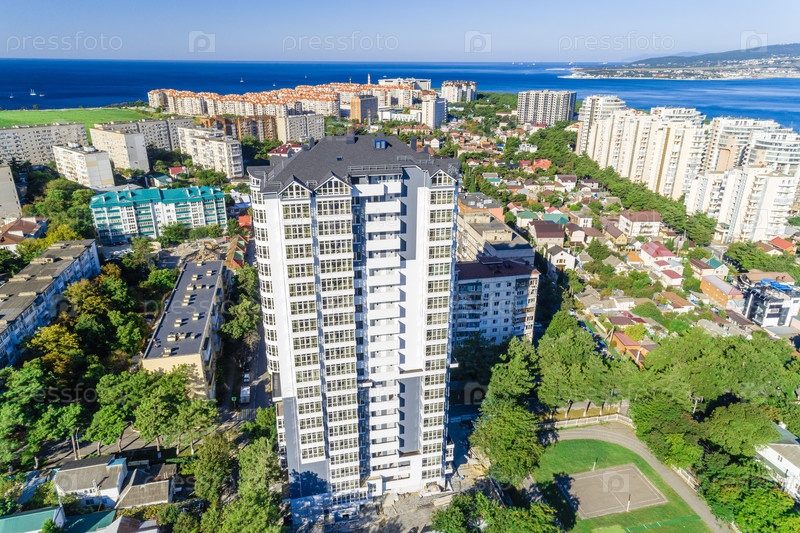 Многоэтажный жилой дом с видом на Геленджикский залив, Черное море и Кавказские горы
