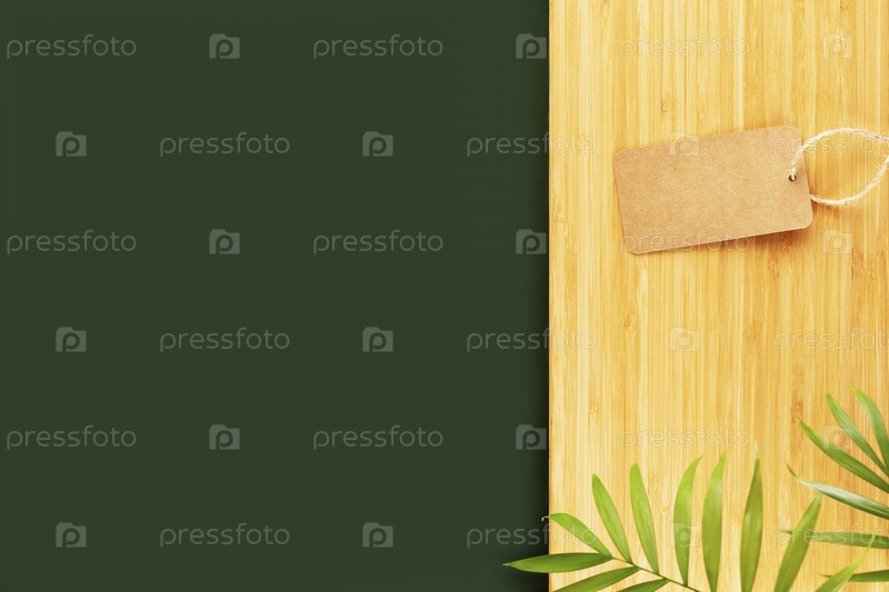 Темно-зеленый стол и деревянная кухонная доска с этикеткой