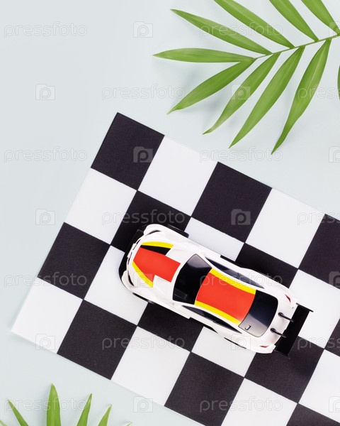Карта соревнований с флагом ралли и спортивным автомобилем