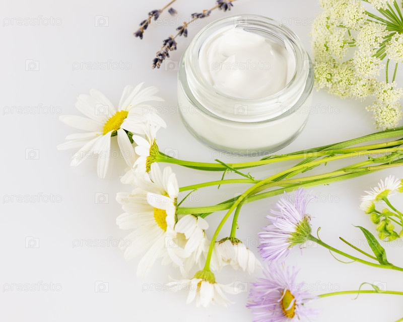 Органический сливочный и дикие цветы на белом фоне