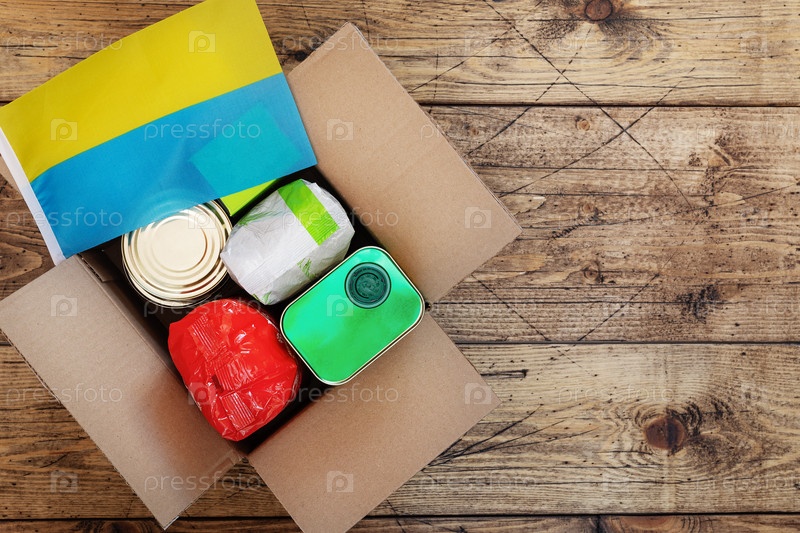 Коробка с гуманитарной помощью для украинских беженцев