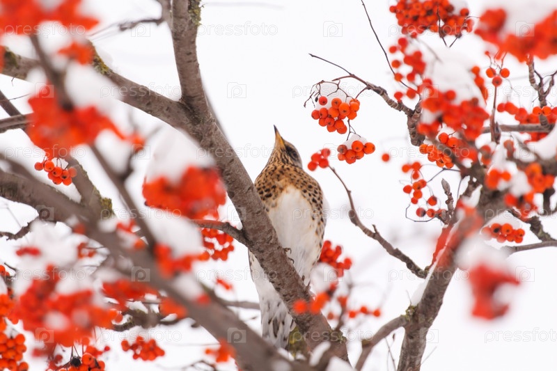 Дрозд- рябинник на дереве