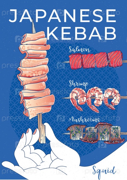 Японские кебабы. креветки, лосось, грибы, кальмары