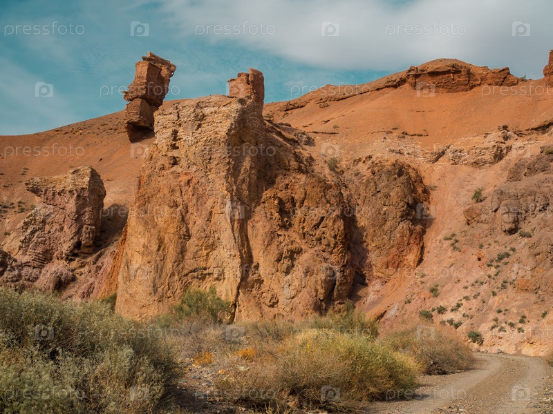 Потрясающий казахский каньон с огненными слоями скал и драматической эрозией