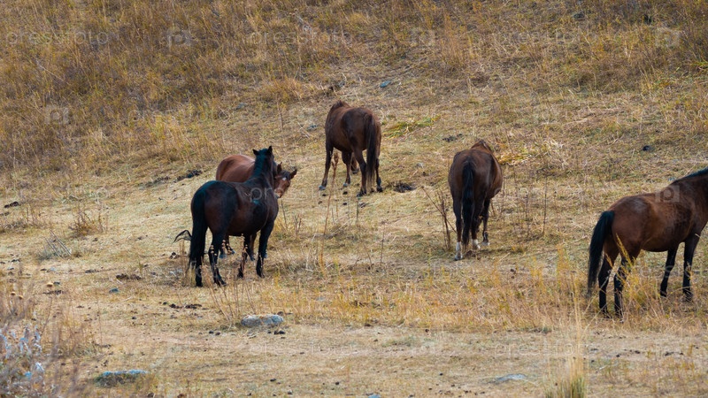 Свобода и спокойствие: дикие лошади пасутся в предгорьях Центральной Азии
