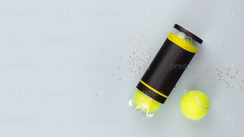 Закрытый пакет теннисных мячей на синем фоне с копировальным пространством