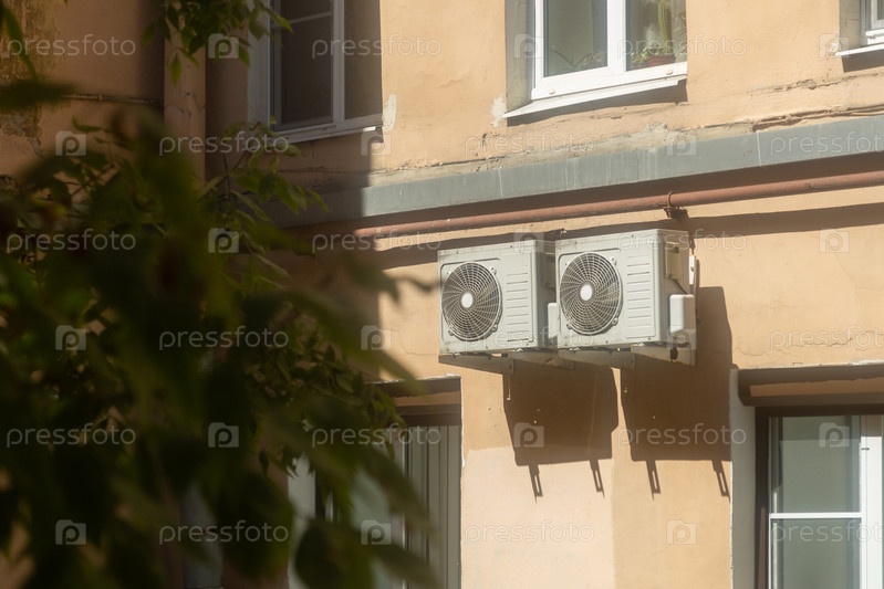 Кондиционеры установлены на фасаде здания.Устройство для комфортного проживания в жаркую погоду