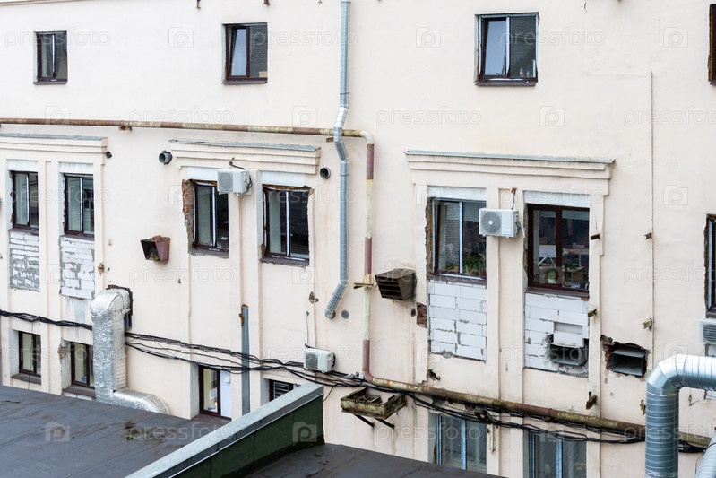 Кондиционеры установлены на фасаде здания.Устройство для комфортного проживания в жаркую погоду