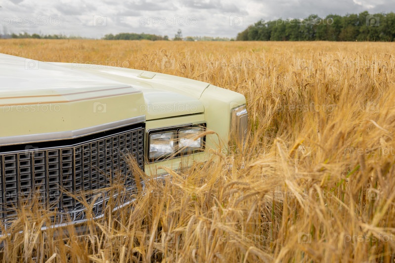 Золотая машина в поле с ржи, среди облаков