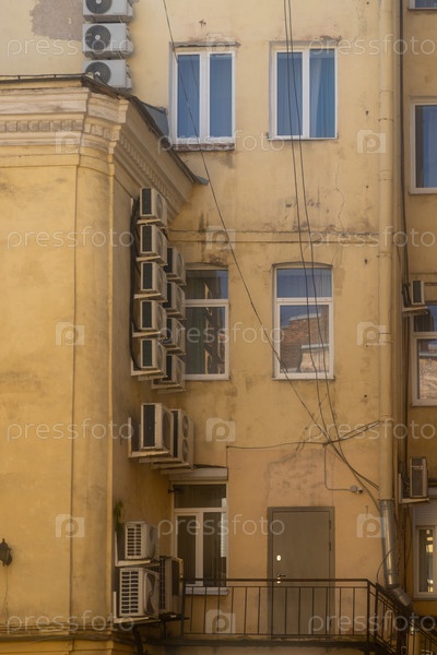 Кондиционер на фасаде дома, система вентиляции и охлаждения
